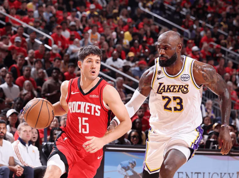 第二节比赛结束,火箭56-47领先湖人。